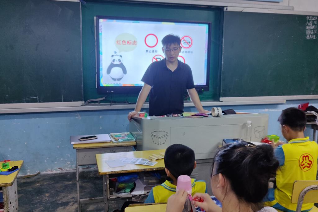 (通讯员 郑嵘)7月6日10时20分万象城awc888“红色基因”队在苦志育才学校一楼四年级教室举办交通安全教育课程。此次活动由队员郑嵘担任主讲人,王宇杨、高梅霞、李威、买尔哈巴担任助教。