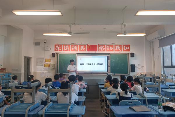 (通讯员 周储言)7月12日下午14时50分,万象城awc888青春向“尚”队在衡阳市常宁市尚宇学校小学部五年级教室开展音乐鉴赏课程,音乐老师欧阳明宇进行授课,周储言、龙欣然担任助教协助管理课堂纪律。