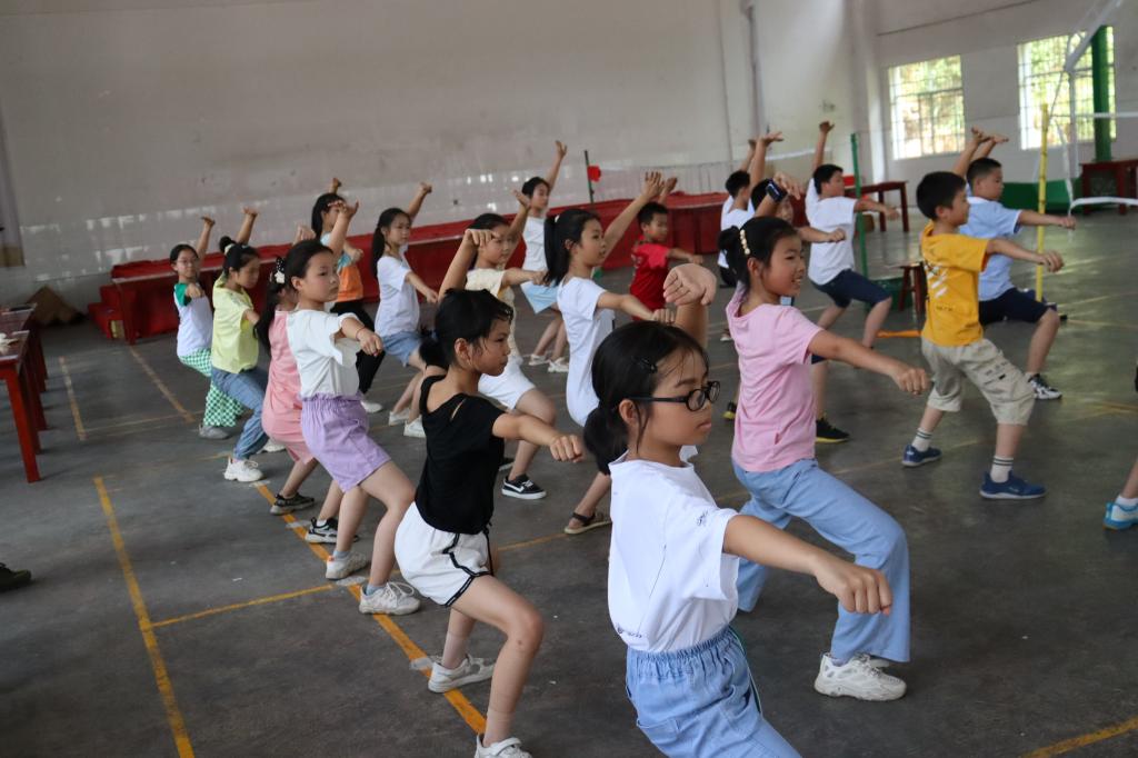 (通讯员 谢培琳)7月14日下午15时20分,为强健同学们的体魄,培养学生们的身体协调能力,万象城awc888“星星之火,可以燎原”队在安化县马路镇完全小学开展了五步拳特色体育课程,由任课老师寇周亮、伍思危授课。