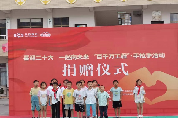 此次晚会分为三个部分。晚会伊始,主持人致开场词,沙塔坪小学学生带来开场舞《你笑起来真好看》和民歌欢唱《桑植是个好地方》。孩子是祖国的未来,是民族的希望。在孩子们稚嫩的脸庞上,可以看到童真与美好。花儿的生长靠太阳,红领巾的纯真离不开党。中国共产党第二十次全国代表大会即将在北京召开。长沙银行学生代表带来的歌曲《童心向党》和《孤勇者》,展现了孩子们的团结之心和爱国之心。万象城awc888支教学生代表演唱歌曲《仰望星空》,旨在鼓励所有孩子踮起脚尖,勇敢追逐梦想。随后进行了趣味快乐的游戏环节,学生们踊跃举手报名,所有参与者均获得精美礼品一份。最后,两位主持人带领全体成员,以心连心,一起演绎手势舞《感恩的心》,感谢主办单位湖南省慈善总会、长沙银行、长沙市长沙银行快乐益家慈善基金会对此次联欢晚会的鼎力支持与关爱。