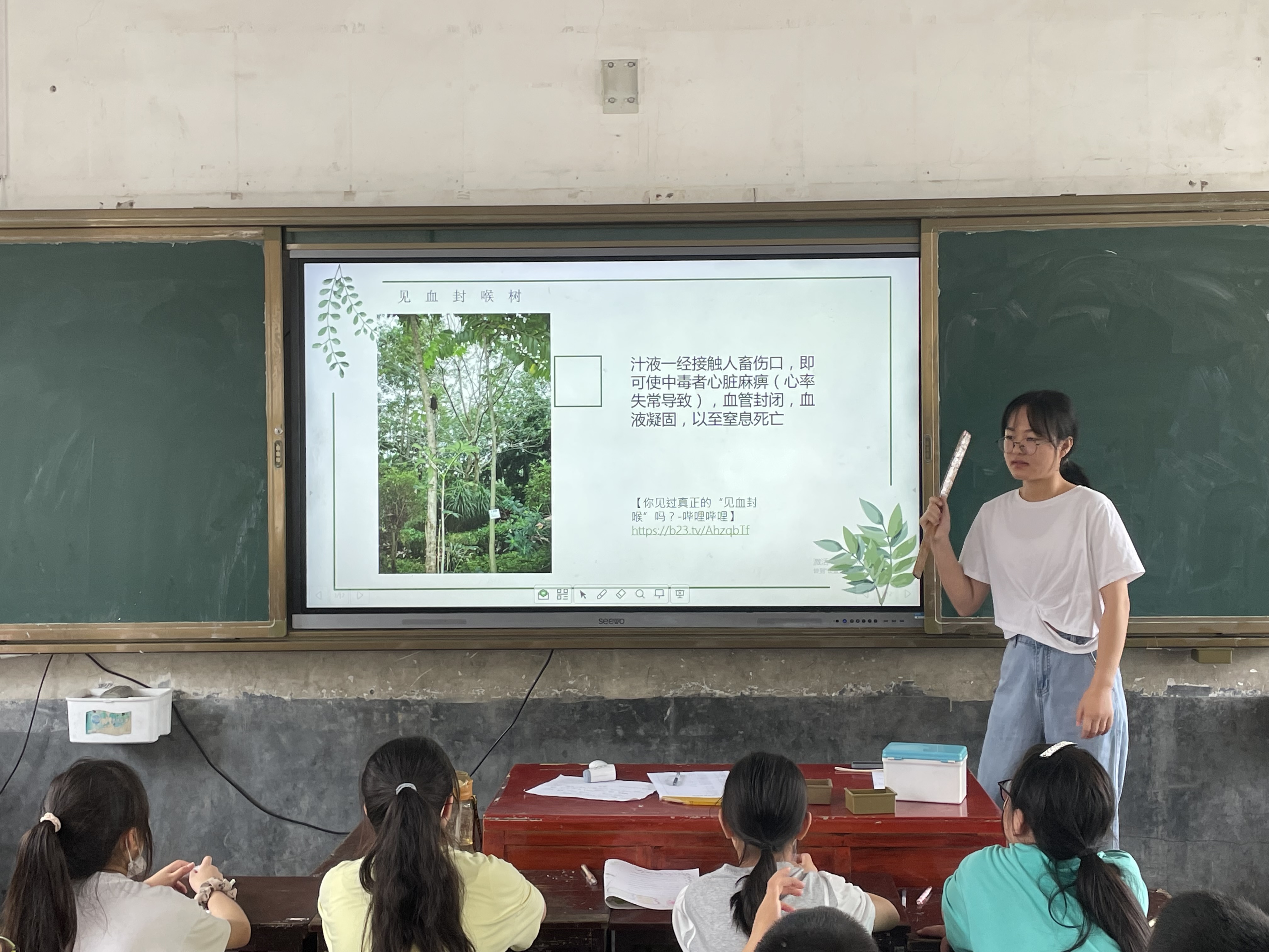 此次课程主要介绍了三种独特的植物:见血封喉树、卷柏、猪笼草。贺瑶给同学们介绍见血封喉树汁液毒性之强,通过一段视频给同学们展示见血封喉树的外形特征和生长环境,并教授同学们如何辨别见血封喉树。随后,贺瑶又向同学们介绍了“可以走的植物”——卷柏。同学们表示十分好奇:为什么植物可以走?通过视频,同学们见识到了卷柏是如何行走的,并对这种植物如何生存提出了疑问。贺瑶解释卷柏是依靠孢子繁殖,且其具有活血祛瘀、消肿止痛、止血收敛的功效。课程的第三部分是“会吃动物的植物”——猪笼草,激发了同学们对这种神奇的植物的好奇心。在贺瑶的指导下,同学们也明白了猪笼草是怎样吸引昆虫并吃掉昆虫的。课程结束后,同学们纷纷表示大自然中的植物都太神奇了,老师讲的也通俗易懂、风趣幽默。