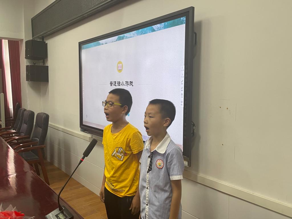 主持人谢培琳指出,我国地域辽阔、人口众多,是一个多民族、多语言、多方言的国家,需要确立、普及共同语以保证交际畅通。而推广和普及普通话,有利于增进各民族、各地区之间的交流,维护国家统一和民族团结,增强中华民族的凝聚力,所以推广普通话尤为重要,并宣布此次专项活动正式开始。邓星先用一个方言转普通话的小游戏活跃了课堂气氛,激起了同学们的兴趣,同时让同学们意识到了方言会给人们日常的沟通带来不便和一定的误解,意识到讲普通话的重要性。在此基础上,邰佳琳通过两段视频给同学们介绍了普通话的历史,古代推广普通话的方式,如何推广普通话,以及推广普通话的意义,同学们也纷纷举手表达了自己对于推广普通话的看法。为了考察同学们讲普通话的能力,邓依婷邀请了五组同学上台,用普通话诵读中国古诗词。同学们都很积极踊跃,表现十分良好。刘嘉怡和李雨轩还通过两个小游戏加深同学们对于普通话的认识。此次推广普通话的专项活动就在同学们的欢声笑语中落下了帷幕。活动结束后,同学们都表示活动过程十分有趣,他们也会为推广普通话进一份力。