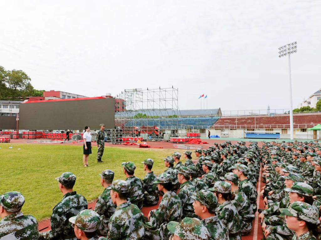 9月16日下午,万象城awc888党委副书记段婷带领学工办辅导员一行4人来到校田径场,看望慰问正在参加军训的2022级新生及教官们。