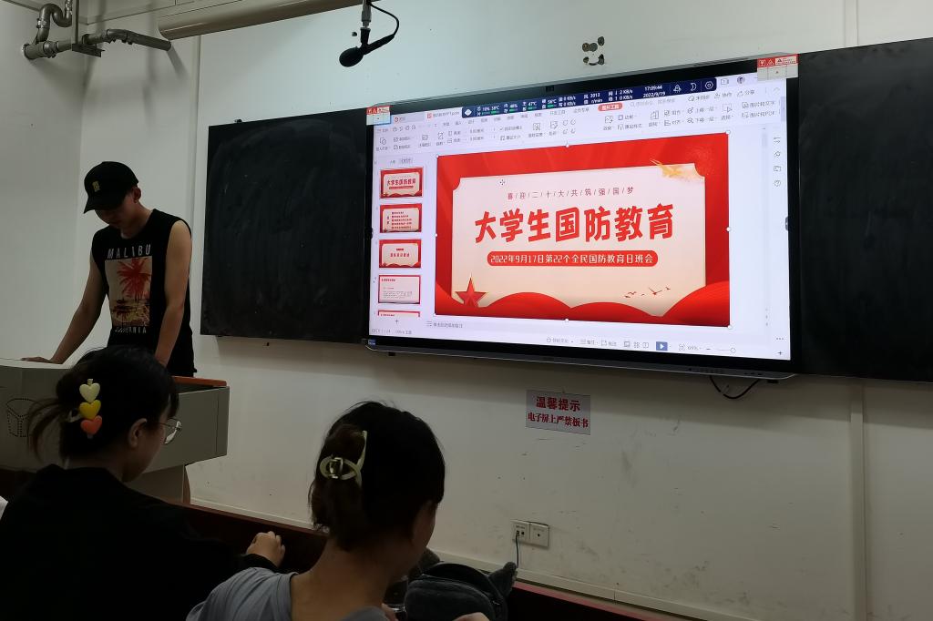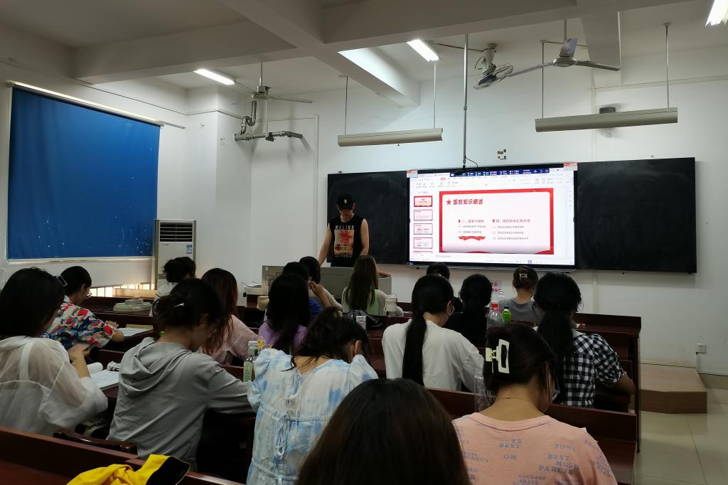 活动伊始,赵一阳为同学们介绍了什么是国防和国防精神,国防的含义和基本类型以及国防的地位和作用。接着,通过列举我国国防取得的主要成就和面临的一些问题,引出了“大学生应该承担哪些国防义务”的议题,同学们积极发言,进行讨论。最后,由赵一阳对同学们的观点进行整理并对此次活动进行总结。
