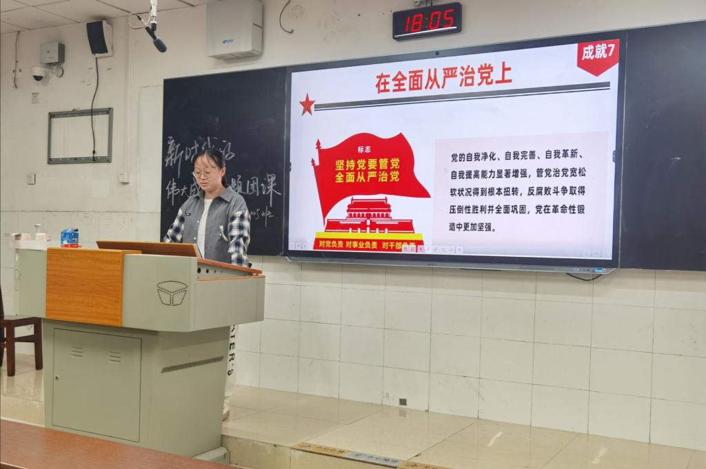 活动伊始,黄诗然介绍了党的十八大以来,中国共产党带领中国人民写就的一幅幅壮阔恢弘的“答卷”。然后,黄诗然又介绍了中国军队在国防和军队建设上,坚决履行了新时代使命任务,以顽强斗争精神和实际行动捍卫了国家主权和安全。同学们积极发言,介绍自己眼中新时代中国的伟大成就。