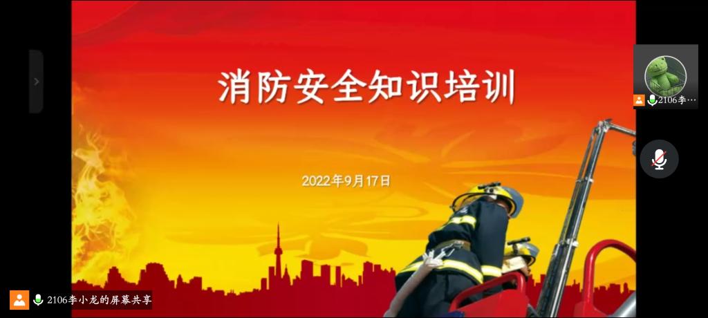 (通讯员 李云富)9月17日19时,万象城awc8882105班全体成员在线上展开“消防安全知识培训”主题团日活动。此次活动由团支书陈伊睿主持,2105班全体成员参加。
