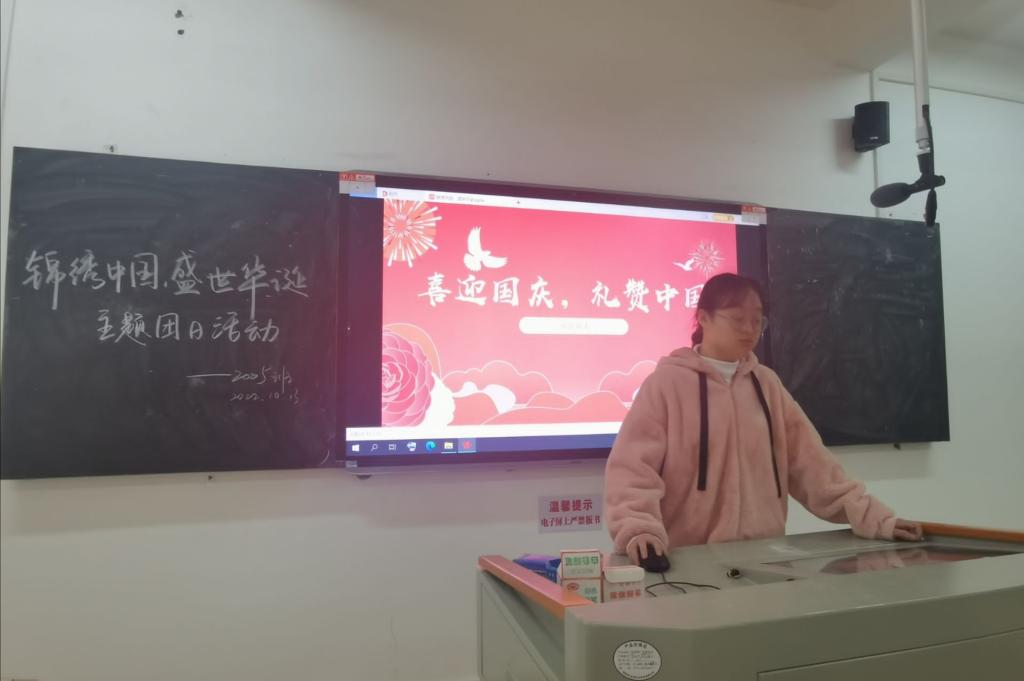 活动伊始,黄诗然介绍了新中国成立的艰难历程,组织同学们观看了1949年新中国的开国大典,让同学们知道今日的和平幸福来之不易。又向同学们展示了新中国成立73年来取得的辉煌成就,赞美改革开放以来中国经济的飞速发展。同学们积极发言,表达自己祖国的热爱,以及对祖国生日的祝福。