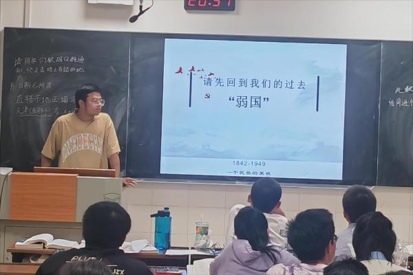 班级团支书从新旧中国的外交作为切入点,分别展示了旧中国以及一系列弱势国家“弱国无外交”的羸弱局面和新中国由于国力发展迅速带来的国际地位提升,并向2209班全体同学展示新时代中国取得的一系列科技、经济等方面的伟大成就,