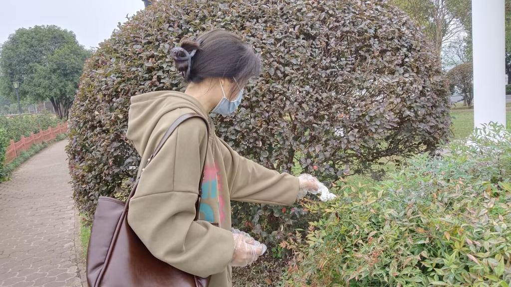 青年志愿者委员邓欣悦组织2201班全体同学在橘子洲景区入口集合,交代此次环保志愿者活动的注意事项,倡议全体同学以“多看,多拾,多思”的态度对待此次环保志愿者活动。2201班全体同学以小组为单位去往不同的区域拾垃圾,将拾起的垃圾放入对应类别的垃圾桶,深化垃圾分类的思想。