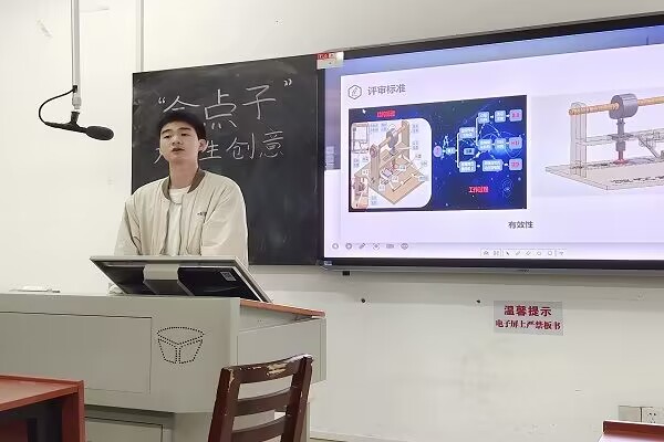 宣讲会开始,安俊霖从自身的参赛经历出发,讲述了团队的参赛过程与获奖的原因,使同学们对创意大赛有了更深入的了解,同时激发了同学们参加创意大赛的兴趣。安俊霖分别从比赛介绍、如何选题、如何组队与合作等方面详细介绍了大赛的流程,为同学们了解大赛流程和注意事项作出了清晰的解读。宣讲会在同学们的积极提问和安俊霖的耐心解答中结束。