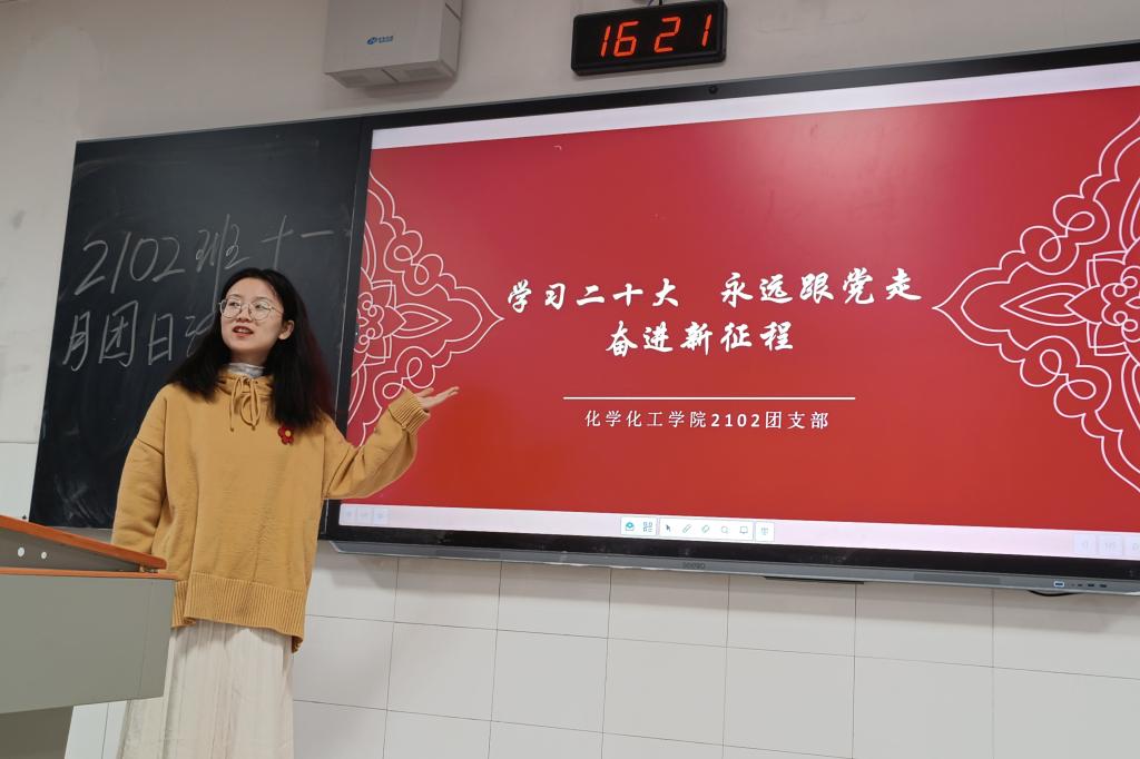 此次团日活动主题为“学习二十大 永远跟党走 奋进新征程”。会议伊始,马心蕊从跟党奋斗、凝聚青心、为党育人、听党指挥四个方面来向同学们讲解学习。加深了支部成员对二十大的了解,明白了拥护我们伟大的中国共产党是当代大学生义不容辞的责任。活动期间,马心蕊向同学们提出有关党的二十大的相关问题,同学们踊跃回答。