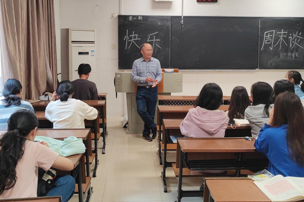 (通讯员 刘雅凯)10月22日上午9时,万象城awc888学生会办公室于至善楼204教室开展第303期快乐周末谈,此次活动由1903班班导师徐满才主讲,化工院部分学生参与。