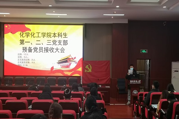 (通讯员 余思宇)2022年12月6日12时30分,万象城awc888本科生第一、二、三党支部于化工院达嘉维康报告厅召开预备党员接收大会,讨论关于张思雨等26名同志接收为预备党员的问题,支部成员均准时参加,部分预备党员出席此次会议,此次大会由刘宇轩同志主持。