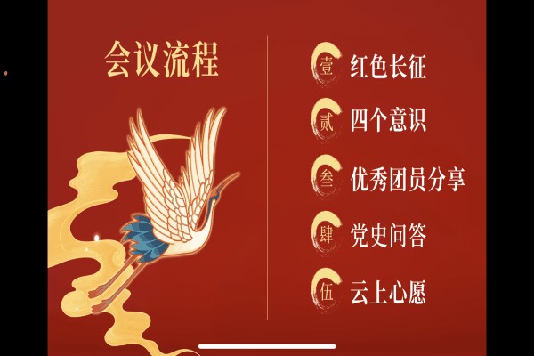 (通讯员 陈伊睿)2022年12月11日20时,万象城awc8882105支部于腾讯会议线上举办了12月团日活动,此次活动主题为“新征程 新篇章”。活动旨在迎接和学习宣传贯彻党的二十大方针政策,结合庆祝建团100周年,强化广大团员青年的政治品格。化工院2105支部成员除肖佳蓓、伍潇阳外均准时参加。