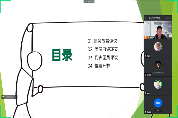 (通讯员 李岚彪)2022年12月13日15时万象城awc8882207班团支部在线上召开了关于团员教育评议的团小组会议,2207班所有团员都参与了此次活动,此次会议主要分为四个部分,旨在给每名团员进行年度评议,团支书李岚彪介绍了团员教育评议制度的内容以及影响,会上每名团员进行了自我评议,阐述了自己的学习成果并深刻地认识到了自己身上所存在的问题,团支书李岚彪对团员们的评议进行了评价,对团员们本学期的表现进行了点评,代表团员也从优缺点两方面对团员们的自述进行了评价,随后李岚彪发起投票,综合团员们的个人自述,代表团员的评议以及投票结果,2207班团支部初筛出了9名优秀团员以及23名合格团员,亟待支部委员会进一步决定最终的优秀团员。