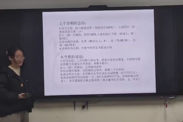 王璇对上学期的学习方面、入党情况等进行了系统性的总结,也对于本学期的工作重点和活动进行了系统性规划。同时,同学们也对上学期的综合表现进行了总结和反思,在此过程中,同学们交换观点,碰撞思想,达成了思想上的共识。
