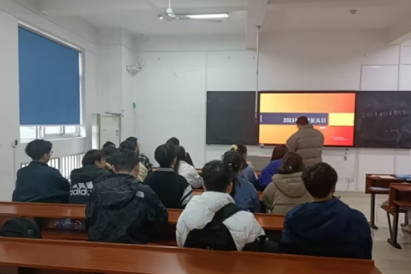 此次活动中,赵燚通过播放视频的方式,采用由小见大的形式,生动展现现代化国防军队建设成就,以及新时代解放军人保家卫国的责任担当,弘扬热血青年追逐青春梦想、投身强军兴军的家国情怀。同时,同学们认真观看宣传视频,以赤诚之心诠释对征兵宣传的重视和对解放军人的敬仰之情。