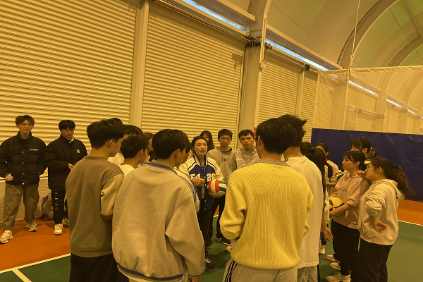 3月3日,院团委负责人张婧、2022级辅导员谢云霞来到训练场地对同学们表示慰问与关心。张婧提醒同学们比赛的过程中要注意安全,并强调了穿着舒适度与热身运动的重要性,鼓足了队伍的士气。谢云霞从专业性的角度对同学们的站位、发球技巧等方面进行有效指导,提出了有益的建议,提高了训练效率。