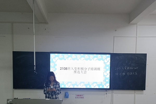 (通讯员 陈功海)3月6日18点15分,万象城awc8882108班举行入党积极分子培训班推选班会。本次班会是线下会议,由2108班班长赵燚组织展开,2108班全体成员参加。