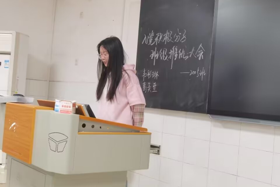 活动伊始,黄诗然介绍了此次活动的主要内容和目的。候选人韦彩琳、葛美萱依次进行自我陈述,其他团员对两位候选人进行了有关党的相关知识的提问,黄诗然组织2005班全体同学进行无记名投票。提问结束后进行了现场唱票,并公布投票结果为韦彩琳10票,葛美萱8票,韦彩琳获得了2005班团支部推优入党的名额。