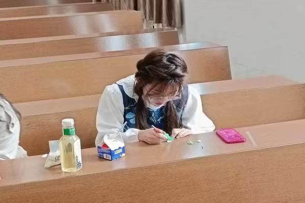 活动伊始,健康服务部干事朱伶俐定好场地并为大家准备好活动所需要的发夹、奶油胶、配饰等。参与人员到达场地后,朱伶俐为大家分发发夹,同学们可自由选择自己喜爱的奶油胶颜色及配饰材料。活动现场,全体同学们热情兴奋、情绪高涨,每个人都在精心设计着自己的作品,用奇思妙想创作出了很多可爱又独具特色的发夹,活动现场充满了欢乐。