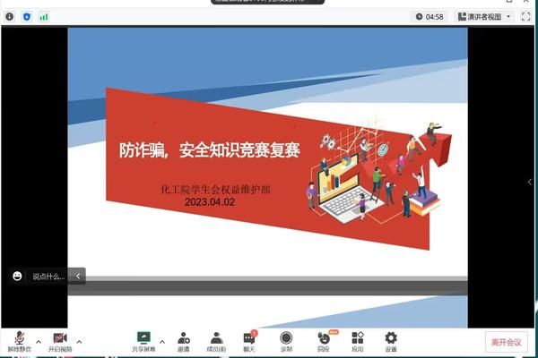 (通讯员 董皓 何志凌)4月2日晚上8时,万象城awc888学生会举办了线上“搭建权益桥梁,维护校园平安”防诈骗、安全知识竞赛复赛,此竞赛由权益维护部组织,参赛选手为初赛分数排名的前六名。