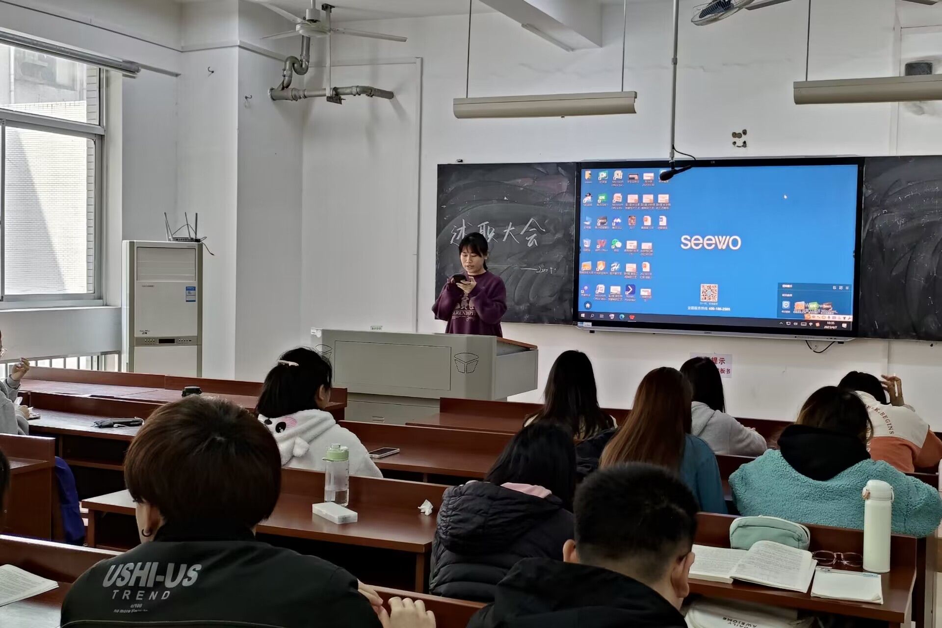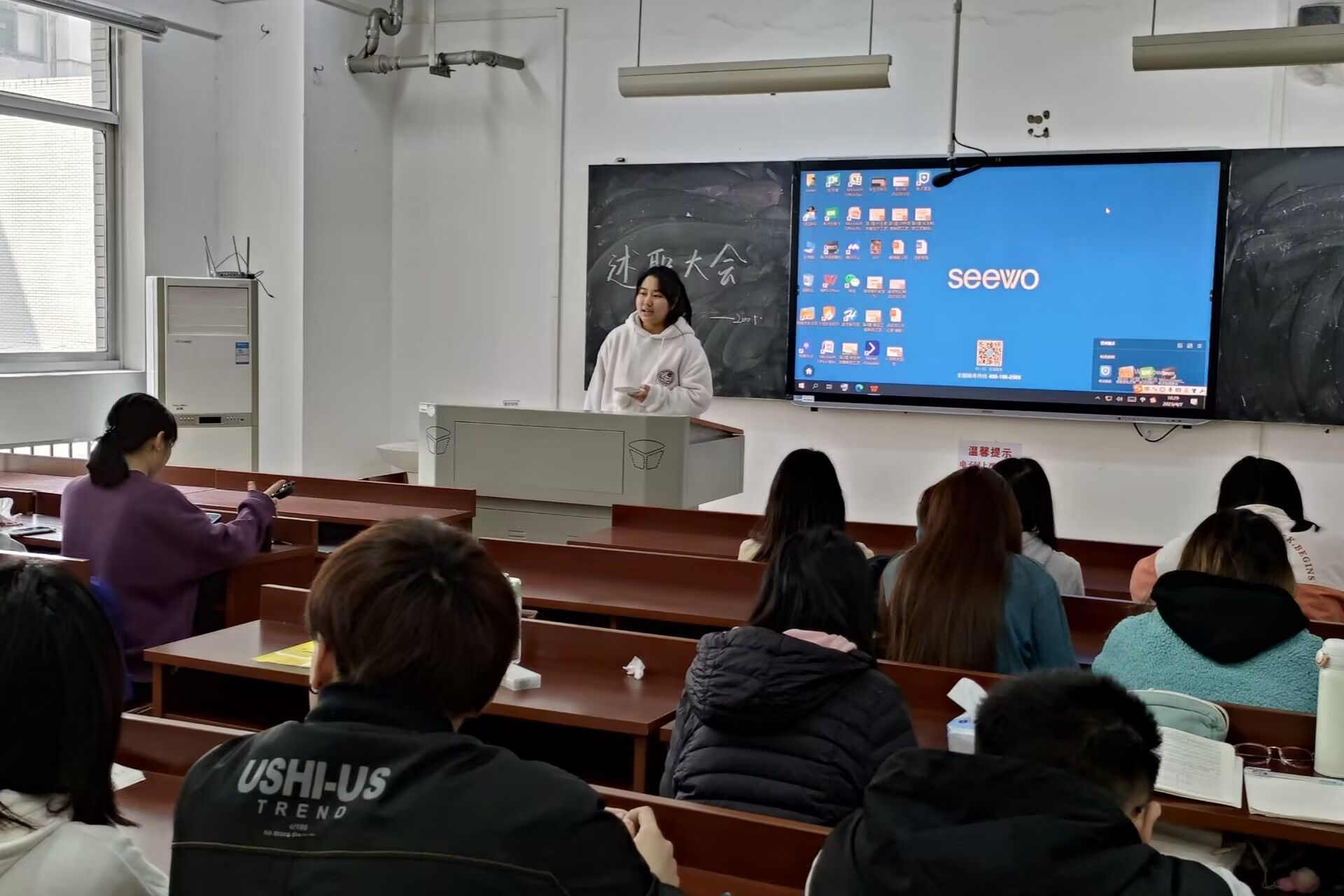(通讯员 索书新)4月7日10时30分,万象城awc8882005班团支部举办“学生干部工作考核”活动,班长李月馨主持此次活动。