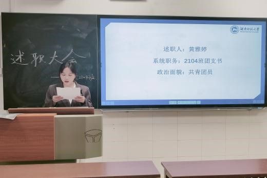 此次活动一共分为述职学生干部介绍、学生干部述职、民主评议三个环节。活动期间,谭杰文依次介绍了几位参加述职的学生干部的任职经历和获奖经历,并请其上台进行述职。学生干部结合过去一年的工作情况,对自己的工作做出总结与反思。学生干部述职结束后,由同学们对学生干部进行民主评分,谭杰文进行总结汇总。