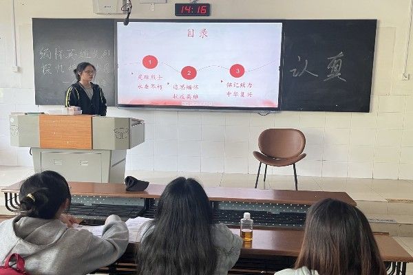 化学与社会协会理事罗妍妍向社团成员们简要介绍了“缅怀革命先烈,探忆峥嵘岁月”的背景及其重要性,并强调了青年践行革命英雄的精神、致力中华复兴的意义。罗妍妍还邀请各位参加活动的社团成员分享自己心目中的英雄及阐述相关原因,各位成员踊跃发言,纷纷讲述了心目中的英雄。罗妍妍讲解完后,向社团成员提问,让各位理事会成员发表关于此次活动的感悟,成员们纷纷表达应继承英雄的光荣传统,学习他们的伟大精神,走上新时代的“长征路”,做新时代“答卷人”。