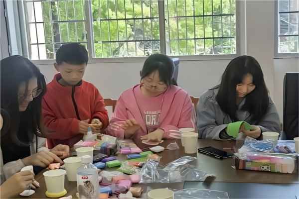 此次活动由绘心民俗社理事邱渝杰负责,参与成员有绘心民俗社理事会成员、十八位绘心民俗社会员与岳龙社区的小朋友们。到达社区后,理事邱渝杰将材料分发至每个人,会员和小朋友们在拿到材料后,一边观看教学视频一边构思自己的笔筒样式。活动过程中,会员们和小朋友们一起发挥自己的奇思妙想,共同制作出许多独具特色的笔筒。在笔筒制作完成之后,会员和小朋友们利用剩余的黏土制作自己喜欢的卡通人物。在活动最后,会员与小朋友们一起合影留念,记录欢乐的时光。
