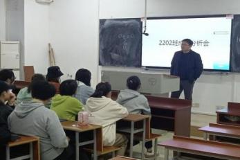 2202班学生杨子昂代表2202班向熊二虎的到来表示感谢,并且宣布会议开始。会议开始,熊二虎向同学们展示2202班成绩分布图,并由此对同学们成绩进行分析,分别从专业排名前10名,前20名,前50名三个方面进行展开。熊二虎表扬排名前列同学,呼吁同学们向名列前茅的同学学习。同时,对于挂科的同学做出鼓励和指导。成绩分析后,熊二虎就关于大学生如何作何做好学习对2202班全体同学进行指导。