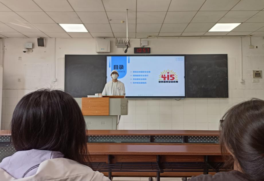 首先,由邹长玮阐述国家安全的基本内容,并分别从贯彻总体国家安全观,增强国家安全意识,夯实新安全格局与筑牢新发展格局四个方面展开说明,加强了大家对国家安全的认识,进一步理解了进行宣传国家安全教育的意义。在讲解贯彻总体国家安全观的环节,抽取三位同学从不同角度出发提出了自己的见解看法。并由宣传委员杨子琦进行了总结:贯彻总体国家安全观新形势下的维护和塑造中国特色大国安全的强⼤思想武器。