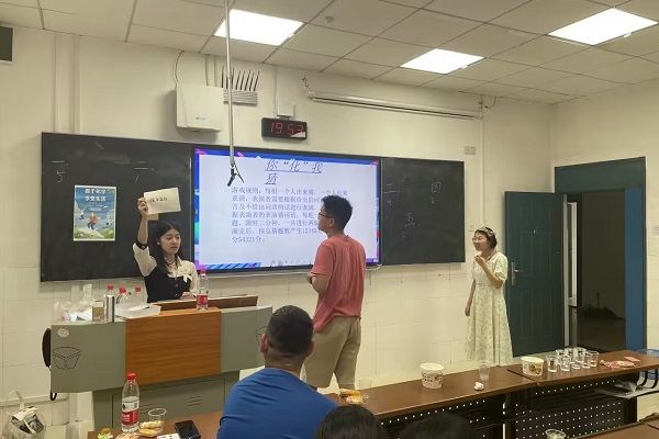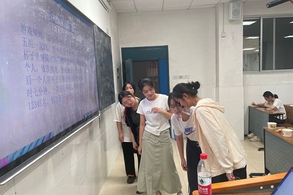 活动前期,主持人用音乐活跃了现场氛围,工作人员布置现场并为参与学生准备了小零食。布置现场时,主持人随机安排花色与数字,为后续抽奖环节设置幸运数字。活动过程共包括抽奖、游戏、惩罚等三个环节。游戏环节中,同学们都积极踊跃地参与衔水杯接力、你“化”我猜、谁是卧底等游戏,为自己的小组赢得分数,游戏失败者需接受小惩罚。积分靠前的小组获得了丰富奖品,同学们纷纷上台分享了学习楚源课程的心得与感悟。