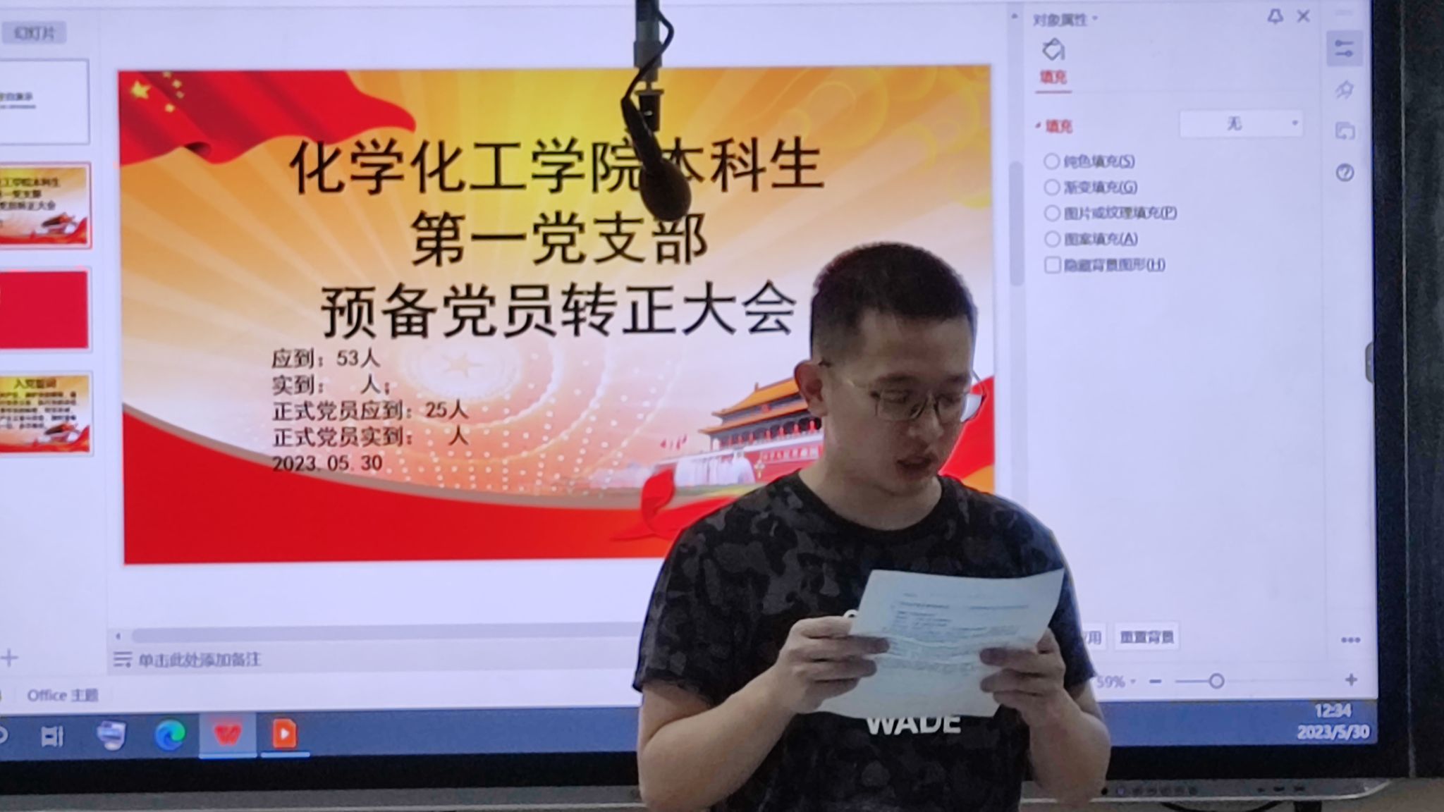 (通讯员 邓星)5月30日中午12:30,万象城awc888本科生第一党支部在化工院217教师举行了预备党员接受大会。与会人员为第一党支部全体成员。