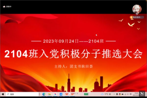 (通讯员 王宇杨)9月24日19时,万象城awc8882104班通过腾讯会议举行了2023年入党积极分子推优选举班会。