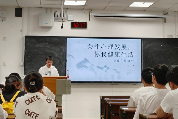 活动主要从两个方面展开。班会进行过程中,刘晨晖组织同学们观看了两部心理微电影,并结合电影中主人公的事迹告知同学们时间焦虑所带来的危害。当代年轻人容易处于一个自我内耗的状态中,往往表现为欲望大于能力,又极度缺乏耐心,欲望上急于求成,行动上避难趋易。同时他也指出性格内向并不是性格缺陷,并劝导内向的同学不必因此自卑,同学们都交口称赞。最后,刘晨晖组织同学们相互交流观看这两部电影后的启发以及遇到这种情况我们该如何自我开导。同学们激烈讨论,最后总结出,应当保持乐观的情绪,经常帮助别人,善待别人,并发展广泛的爱好,从而使自己保持良好的心理健康状态。