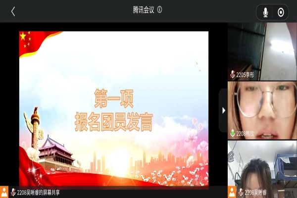 推优入团大会开始,吴晰睿介绍了此次大会的目的和主要内容,公布了候选人名单。四位候选人依次发表讲话,讲述了他们对于进入团校学习的目的和决心。之后进行线上投票,根据投票结果,进入团校学习的同学依次为:陈心怡、熊欣、熊伊橙、管文畅。