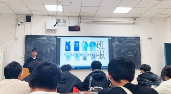 此次会议开展的主要内容是确定班级团支部的特色设计。在开展会议前,班干部积极动员班级成员建言献策,提供特色班级设计方案。在会议中,班级成员积极提出自己对班级团支部设计的想法与意见,气氛融洽。最后,孙金鹏组织大家通过举手表决的方式确定了班服、班徽、班级口号、班歌等班级特色元素。