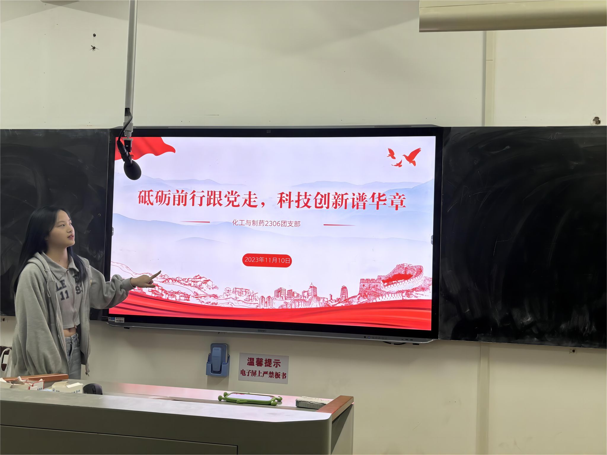 (通讯员 邵菁逸)11月10号中午12时,2306班在化工楼210教室举行11月份支部团日活动。此次活动由2306班团支书邵菁逸主持。