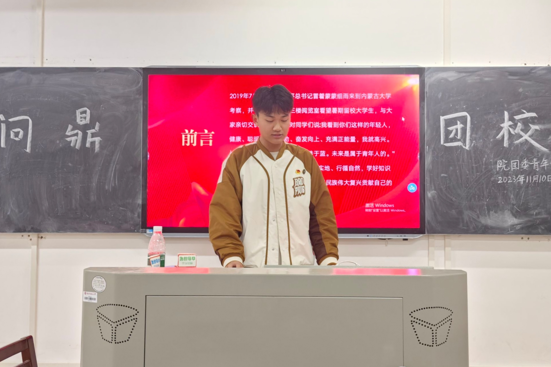 课程在主持人张雪怡致开场词后正式开始。在认真学习过《习近平与大学生朋友们》这一本书后,社团与23级各小组围绕这本书的内容,结合小组成员合作完成的ppt与小组查询的资料,分别上台展示学习成果。2301团校小组以学习身残志坚的黄道亮的精神为主题分享了即使学习道路上有阻碍也不停止前进的感悟,2308团校小组就“为什么要学习马克思主义”这一问题对马克思主义对个人、社会、国家的意义做出解释并阐述了马克思主义坚定青年信念的观点,2305团校小组对书中习近平主席给青年的寄语进行解读,2304团校小组以青年有目标、敢于奋斗、敢于吃苦为主题强调坚持学习的重要性,2309团校小组围绕习近平总书记对大学生的建议与指导以演讲形式提出青年应以身作则,到国家需要的地方去实现人生价值,2307团校小组以习近平总书记的寄语“生逢其时,为之奋斗吧”为题展示小组学习成果。大多数同学表示在学习《习近平与大学生朋友们》之后,思想得到进一步提升。