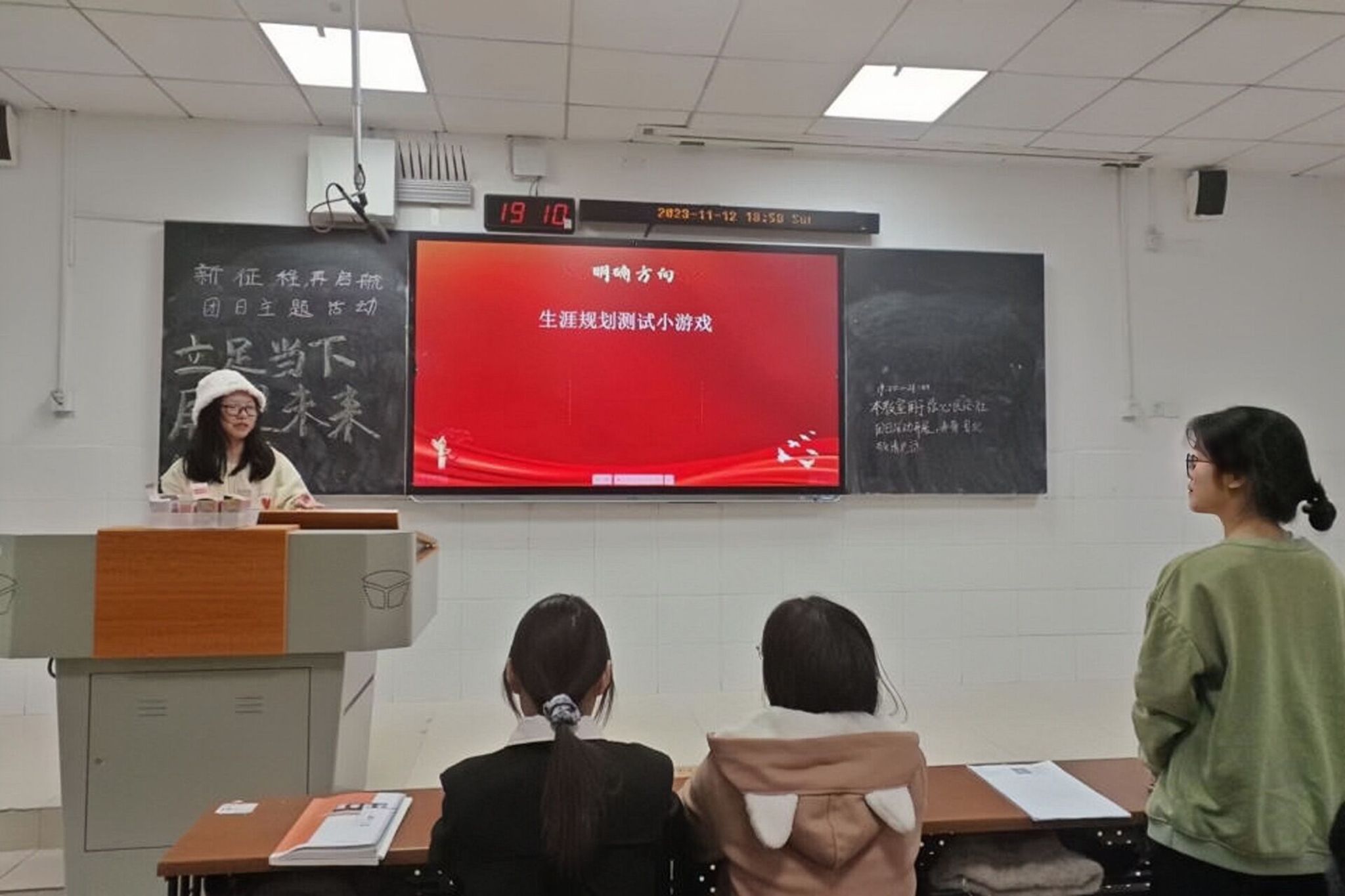 活动伊始,王燕介绍此次活动主题及活动名称,通过PPT详细讲解“新征程”的主题涵义以及时代背景,并以此再深入说明“再启航”的时代性与社会性。在帮助同学理解当下时代发展现状的同时,王燕也让同学结合自身能力与时代相融合,体现与国家命运的共进退。理事会成员也踊跃分享自己对当下新时代发展的感想以及对未来的展望。结束理论学习后,王燕又组织了有关生涯规划心理测试小游戏的互动环节,从生涯规划的角度,为同学们提供更深更广的发展方向:立足自身当下特点,展望美好未来。最后由王燕进行总结并宣布活动结束。