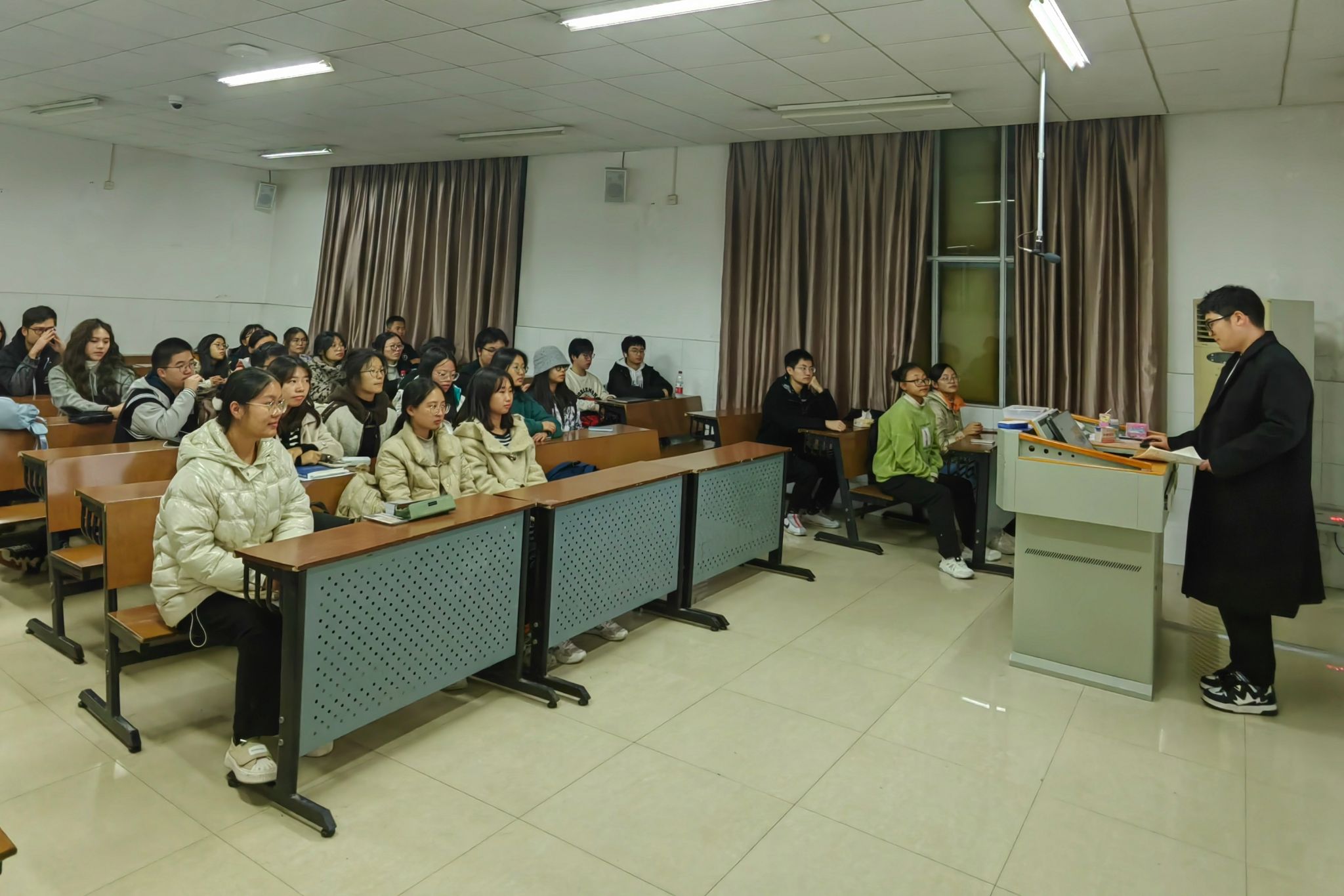 此次活动中,叶彬向同学们介绍了当前青年就业现状。其主要表现为就业压力大、薪资待遇不高、就业结构失衡三个方面。同时,同学们对自己的见解进行讨论分析,充分了解当代青年就业现状。而后,叶彬引进了青年创业的主题,引起了同学们极大的兴趣,在同学们踊跃发言过后,叶彬再对青年创业的机遇与挑战进行讲解。