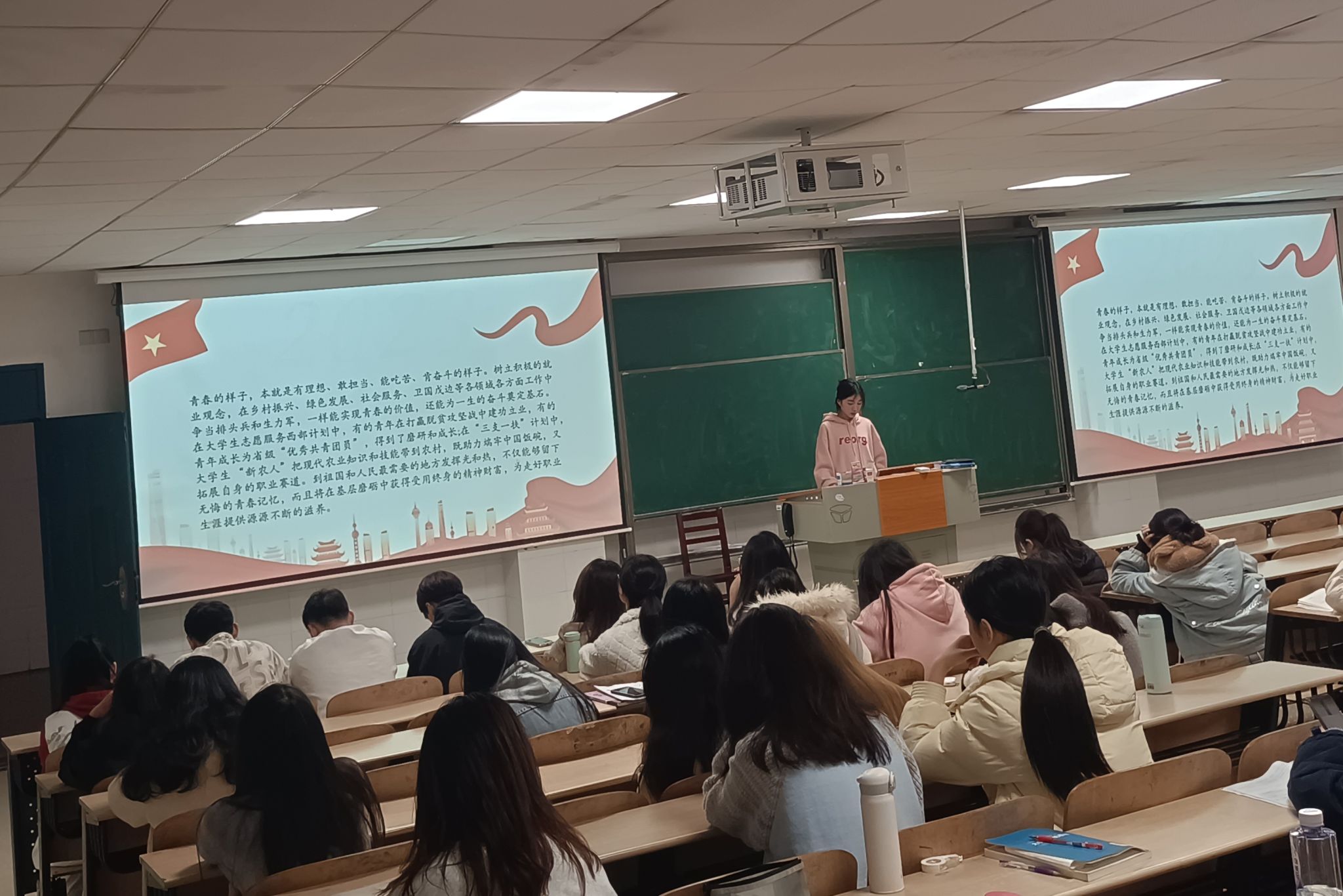 此次活动中,青亲向同学们介绍了当前青年就业现状,说明了制药工程专业的就业局势并简单分享了本专业的部分就业选择。随后,同学们进行了发言讨论,在充分了解当代青年就业现状后,讨论发现其主要表现为就业压力大、薪资待遇不高、就业结构失衡等多方面问题。最后,青亲引出青年创业的主题,带领同学们了解多例青年创业的故事,对青年人创业的机遇与挑战进行分析,并指出习近平总书记寄语青年要敢想敢为、善做善成。