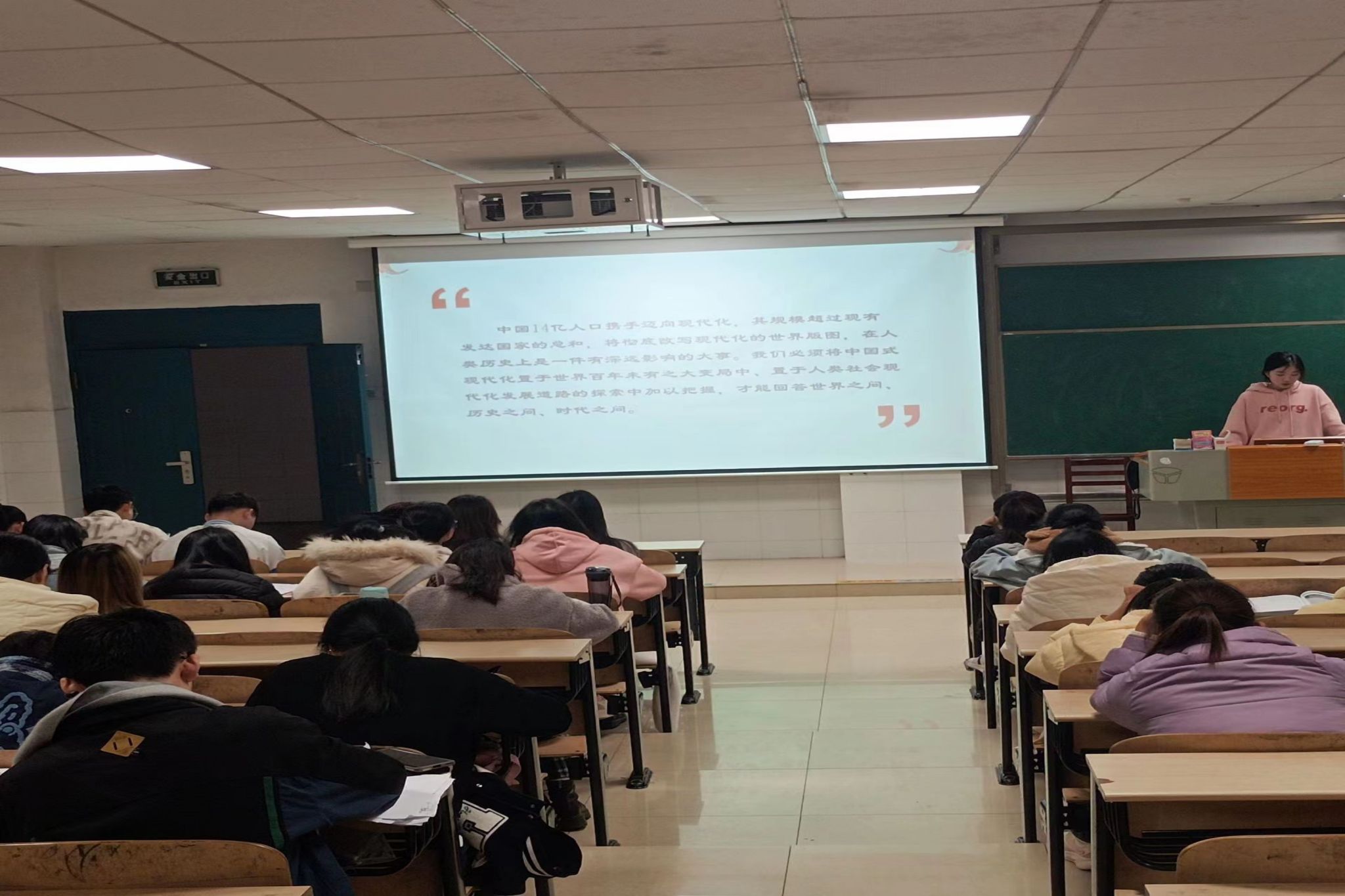 此次团课学习,由2208班与2209班共同开展,大大增进了班与班之间的情感与交流,使同学们学习了解新时代新征程党和国家事业发展的目标任务,深刻理解中国式现代化是强国建设、民族复兴的唯一正确道路,明确了青年人肩上的重担,坚定了强国复兴的信心与勇气,为做好强国复兴的中国答卷而不懈努力。
