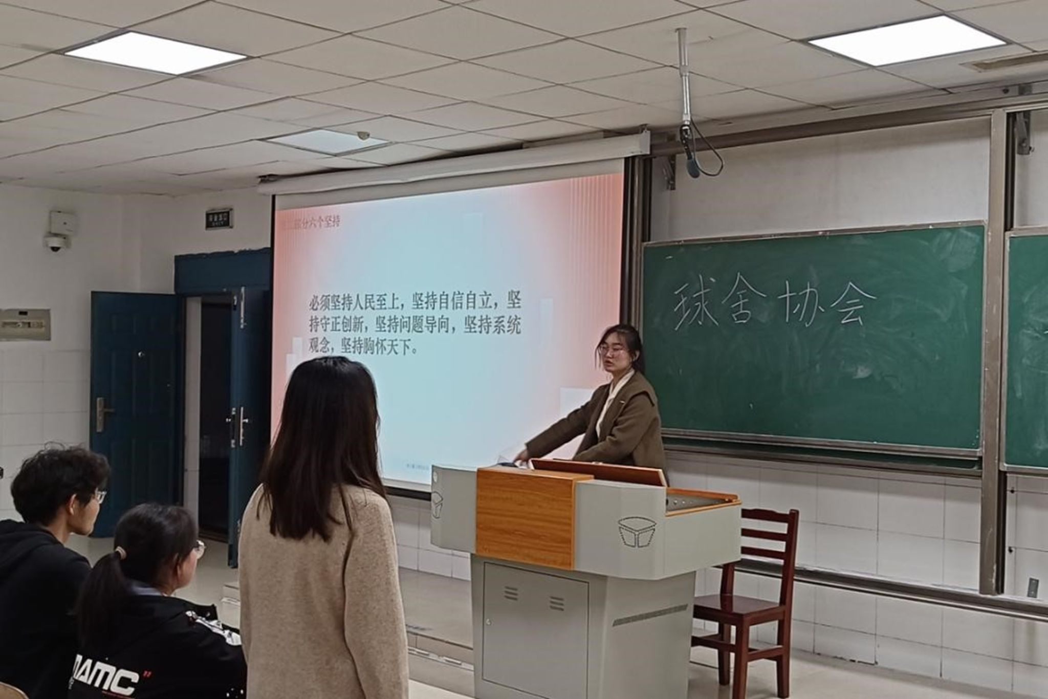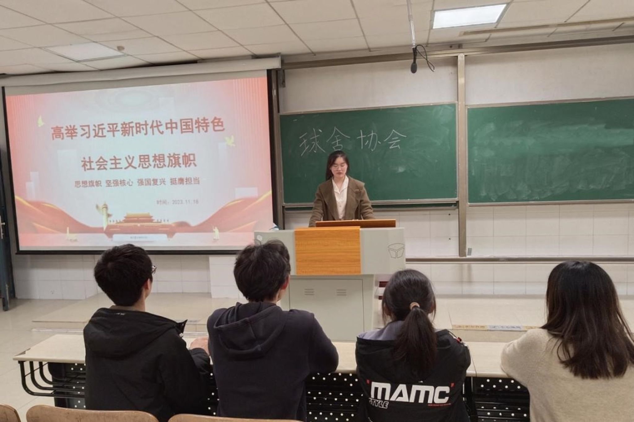 (通讯员 吴凤玲)球舍协会于11月18日下午16时在至善楼 108 教室开展“思想旗帜”专题学习活动,会议由理事长韦佳琪主持,理事会全体成员参加。