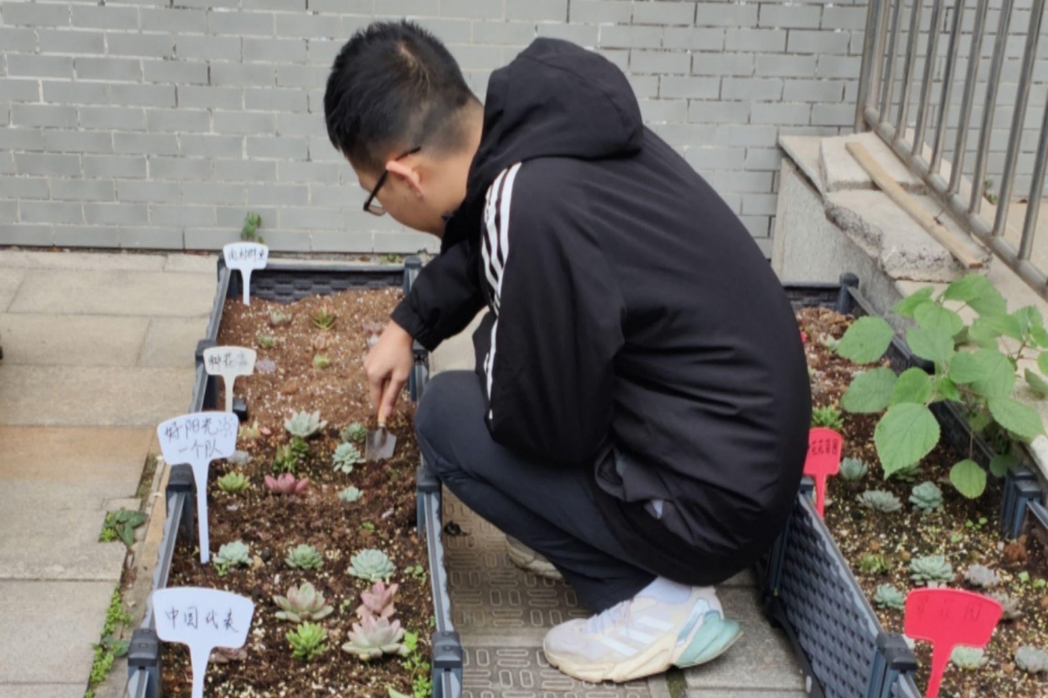 活动伊始,各成员到达化工院集合,组长王天一分配各成员的负责的花圃或菜圃。在此次活动中,第七小组成员之间分工明确,按规定时间到达指定花圃后,有序进行浇水、翻土、施肥等工作,对花圃及菜圃都进行了认真细致地整理,便于化工院花圃的茁壮生长。