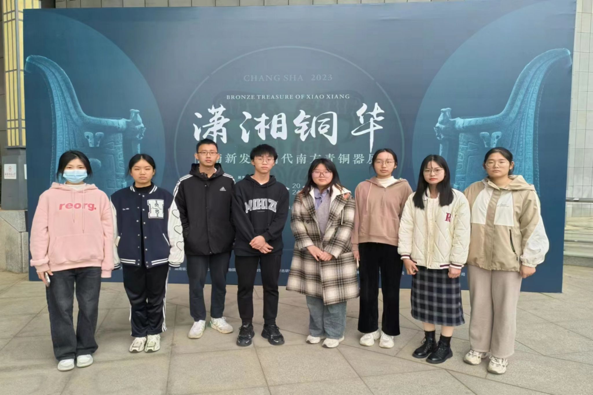在此次活动中,王天一带领成员们到达湖南师大博物馆参观“潇湘铜华—湖南新发现商代南方青铜器展”主题展览,并向成员们介绍活动开展的目的、内容及注意事项。同学们在王天一的带领下开始参观,存留的历史文物让参与成员肃然起敬,铜器旁的文字讲解更引导大家走进文物的背后,对3000多年前人们的生活世界有了新的了解。第七小组在参观完博物馆后,纷纷表示未来要为了解古今文明、复兴中华贡献自己的力量。