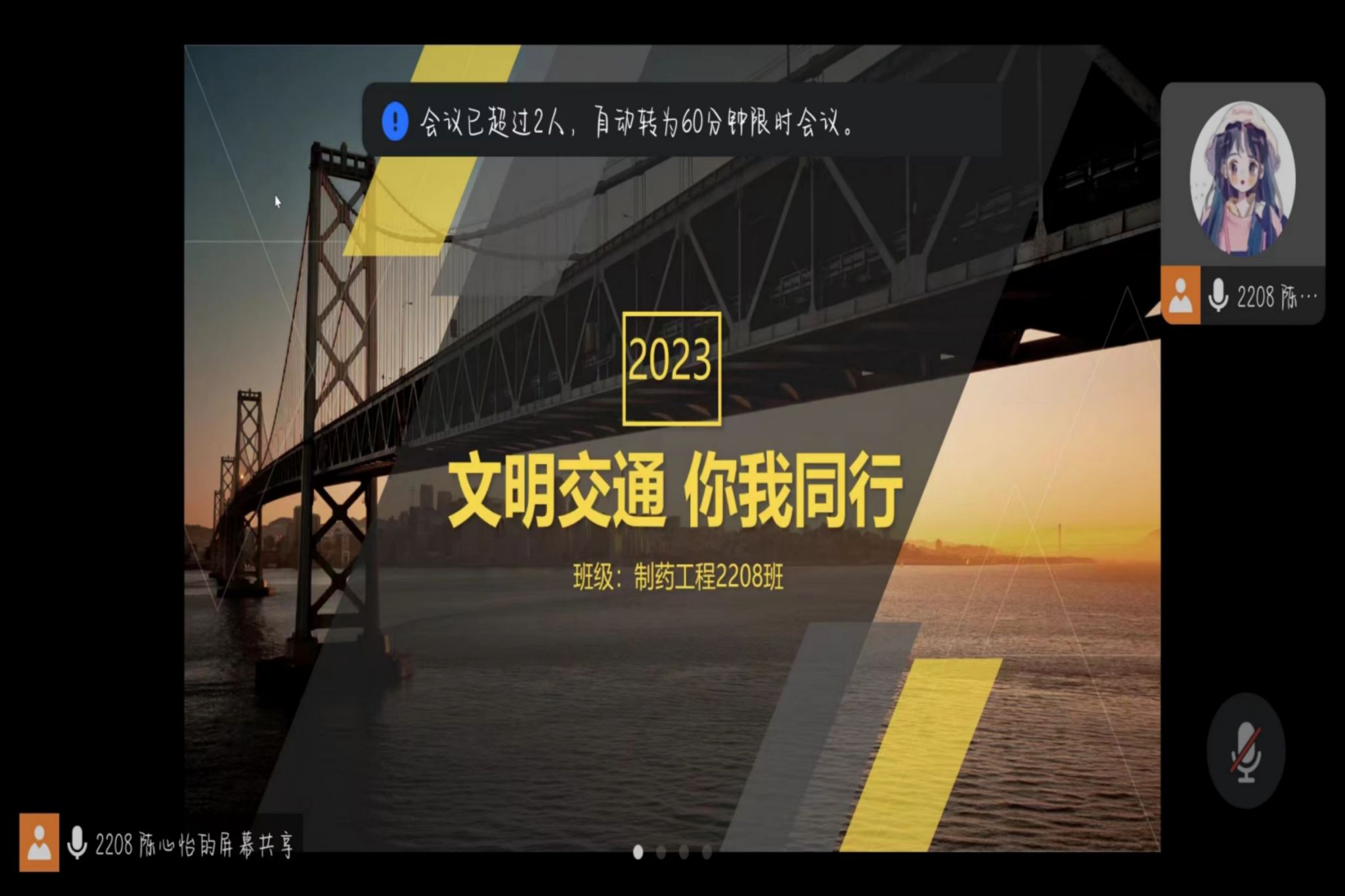 (通讯员 王天一)11月30日19时,万象城awc8882208班在线上开展主题为“文明交通,你我同行”的班会。此次班会由学习委员陈心怡主持。此次安全教育班会旨在通过播放相关视频以及宣讲PPT来提高同学们的交通安全意识。