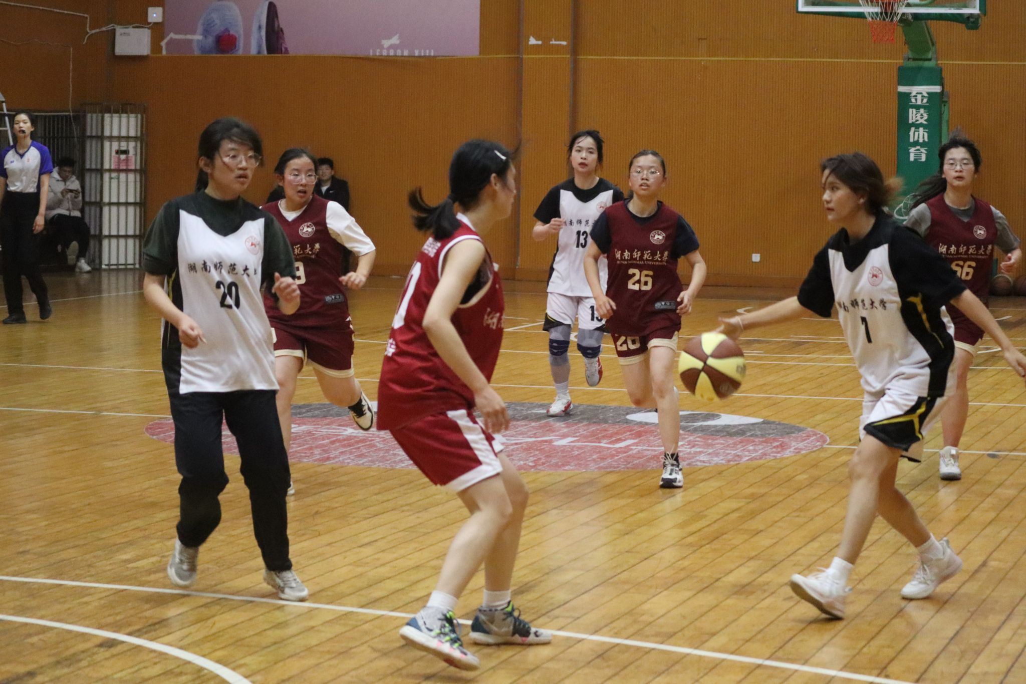 第一节比赛开始,房怡汐与信工院10号球员跳球争夺进攻机会