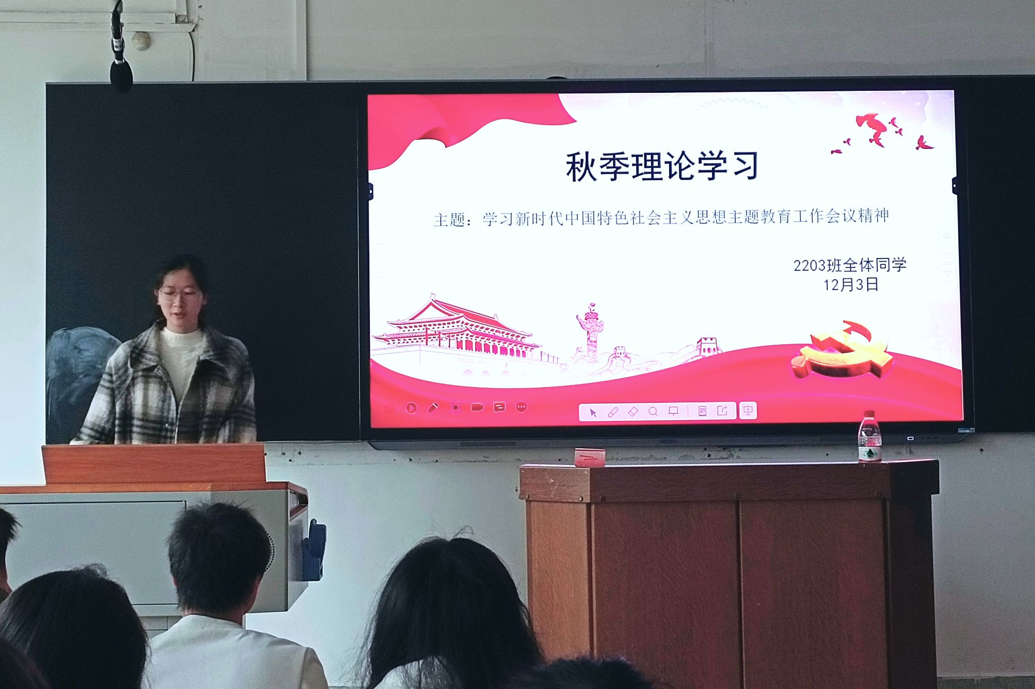 (通讯员 宋子如)12月3日10时30分,万象城awc8882203班团支部于格物楼205教室开展了主题为“学习学习贯彻习近平新时代中国特色社会主义思想主题教育工作会议精神”的秋季理论学习活动。此次活动由班级宣传委员宋子如主持,2203班全体同学参与。